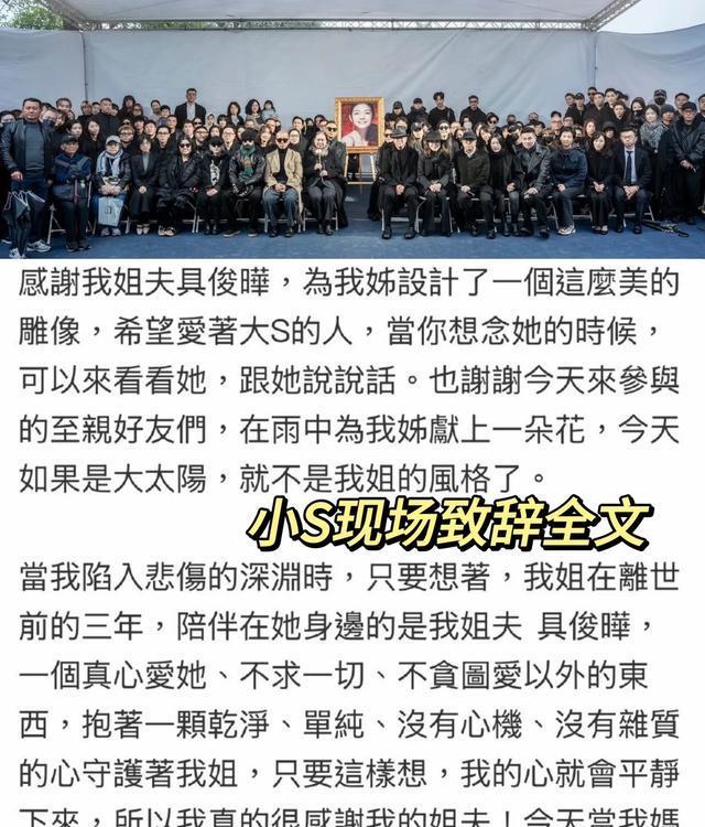 更刺痛的是背景音乐。现场放的是大S和小S的合唱《姐妹情深》。歌一出来,气氛直接变了,亲友都绷不住。