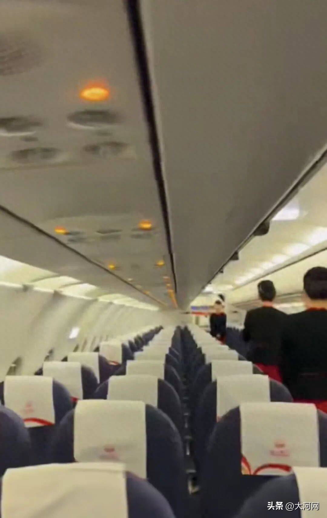 极目新闻记者从其发布的视频中看到,在一架有川航标识的飞机客舱中,该乘客没有出镜,而是用镜头环顾了整个客舱,座位上空无一人,有身着川航服装的三名空姐,分别站在走道中间的不同区域,正按流程在做乘机提醒。